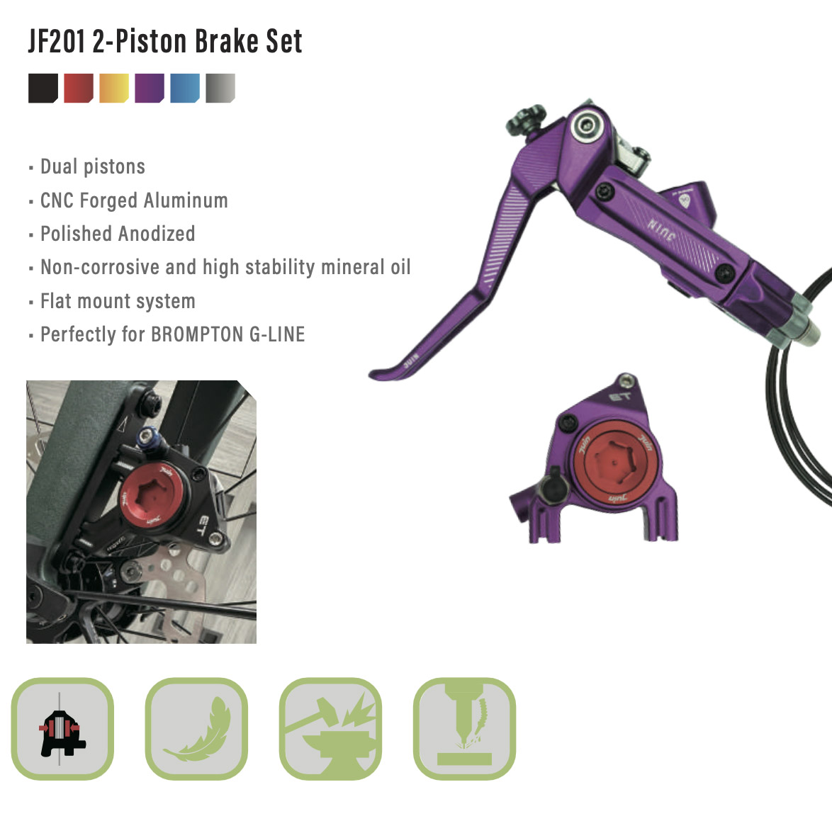 除了前面介紹過的三刀輪之外,把煞把與卡鉗換成更輕更穩定的 JuinTECH JF201油壓煞車組,絕對是相當值得的!而且...除了黑色以外,還有 紅/ 金/ 紫/ 藍/ 灰色的選擇,能讓你的D10更加有個人風格喔!