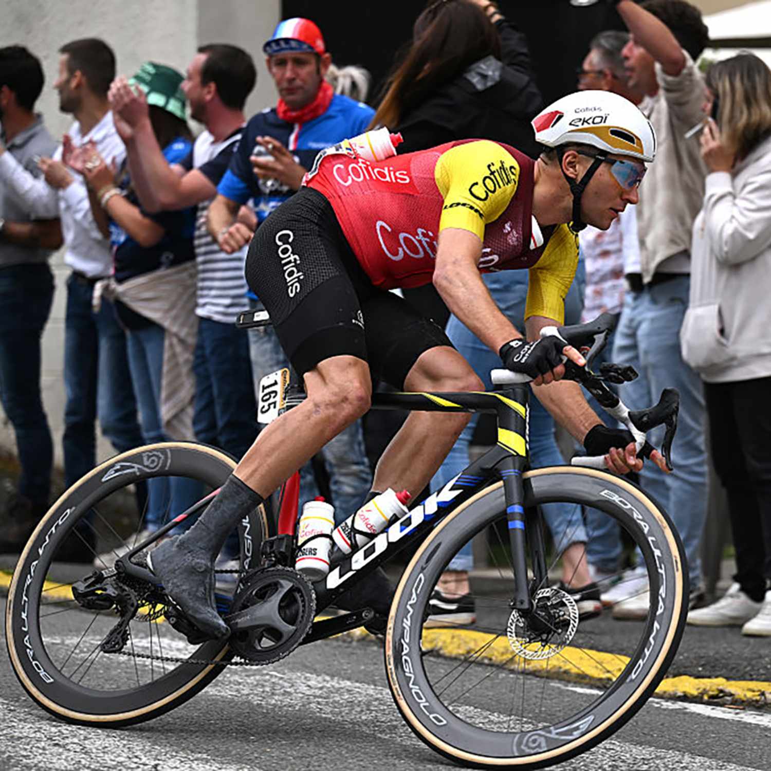 我們回看2024年 Cofidis車隊的設備配置,發現當時採用的是 CORIMA輪組 WS EVO 47mm還在上一代的規格...重量 1,540g!! 以售價超過8萬元的一級比賽輪來說...這重量在賽場上算是...略顯吃虧!
