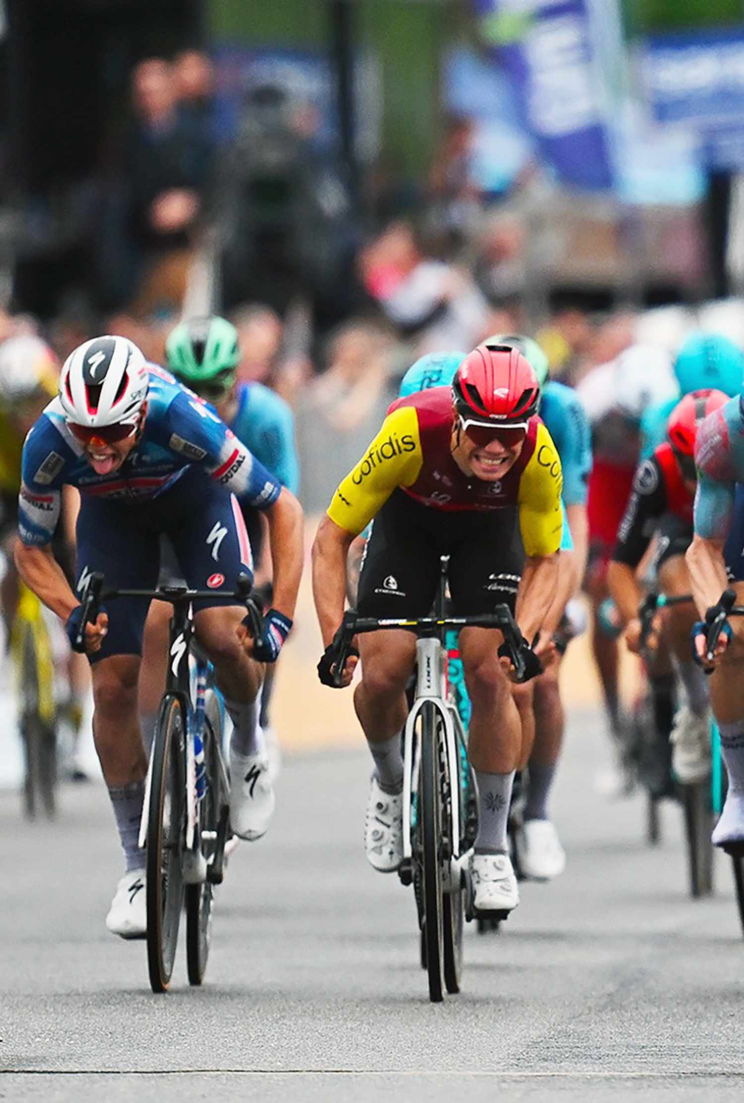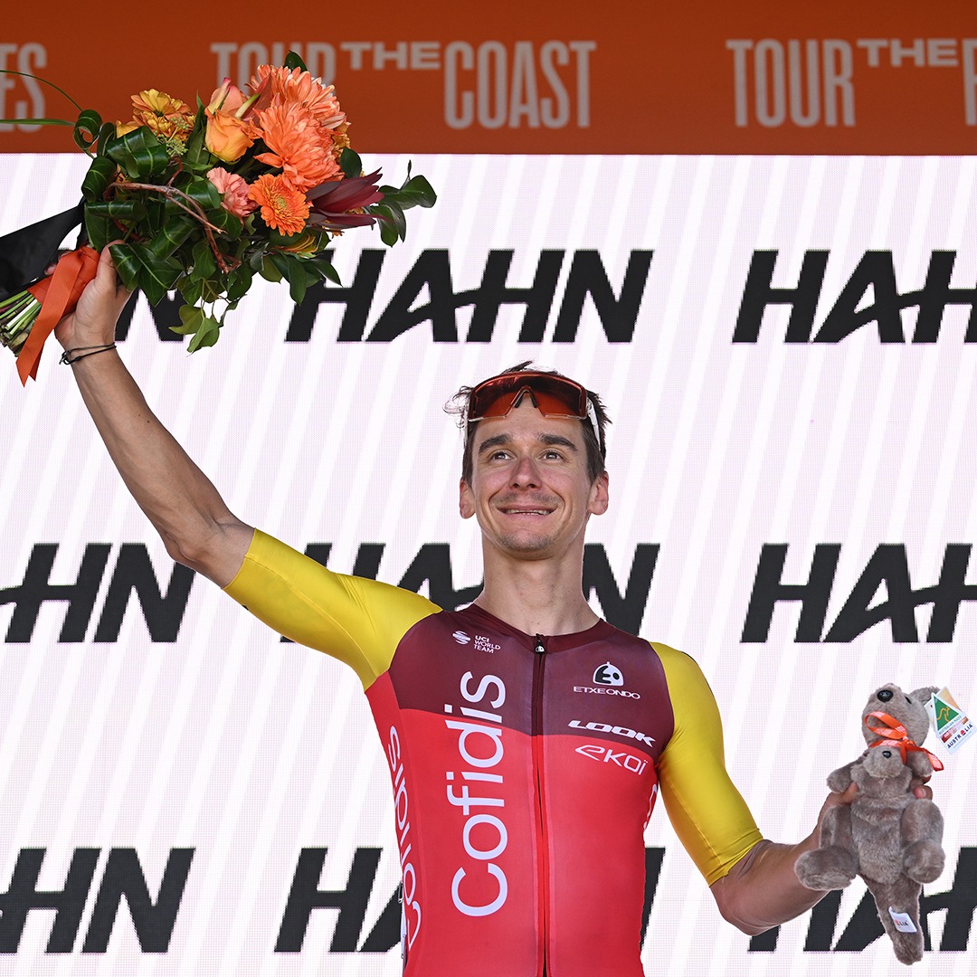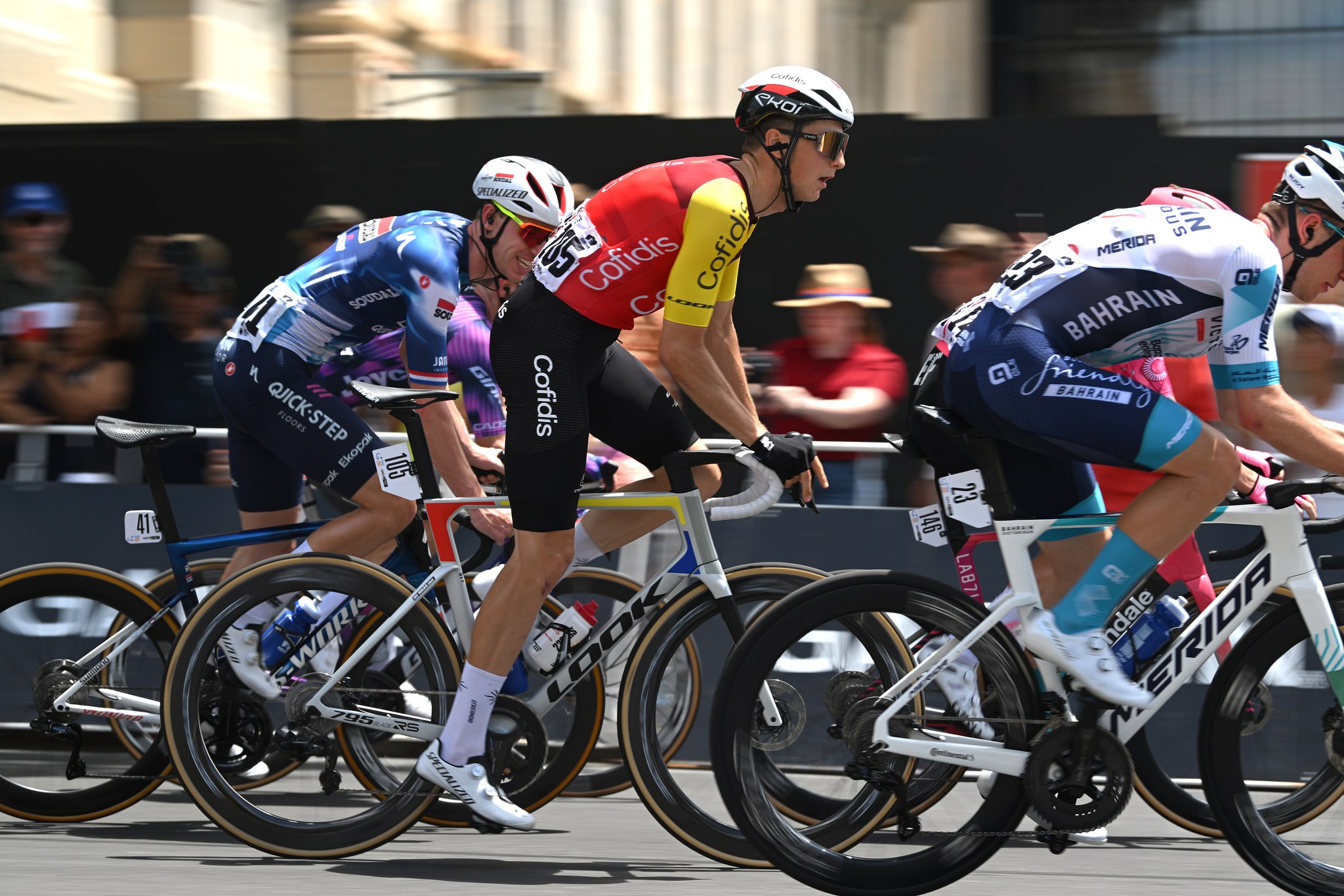 總之!就在 Cofidis車隊維持車架換完變速系統與輪組之後,Bryan Coquard在年初的 Tour Down Under環澳賽首站就奪下勝利(好彩頭)