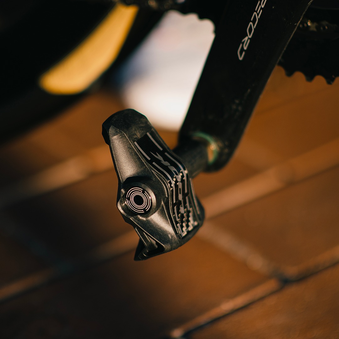 LOOK有自己家的「功率踏板」啊!這組堪稱是目前最高級的功率計踏板,全部電子結構與電池都藏入軸內,因此在外觀上看不太出來,騎乘中只能從側邊的同心圓圖案分辨出來「喔!這個是LOOK功率踏板!」